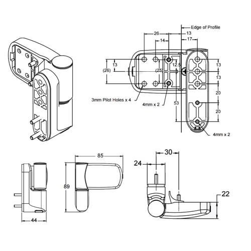 The Avocet Triad Mini 3D Flag Hinge for UPVC Doors – Synseal variant has an adjustable step height between 12mm and 16mm. Simple Allen key adjustment. Synseal profile hinge. Suits doors up to 90 kg (3 hinges).
