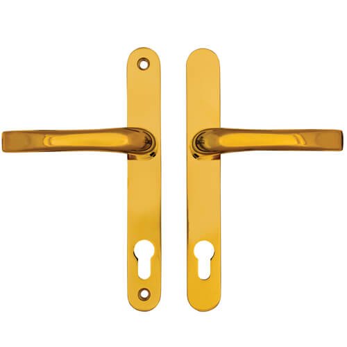 This Easyfit handle set has unsprung 92pz internal and external levers on a 230mm x 30mm backplate which is available in white, gold and polished chrome finishes.