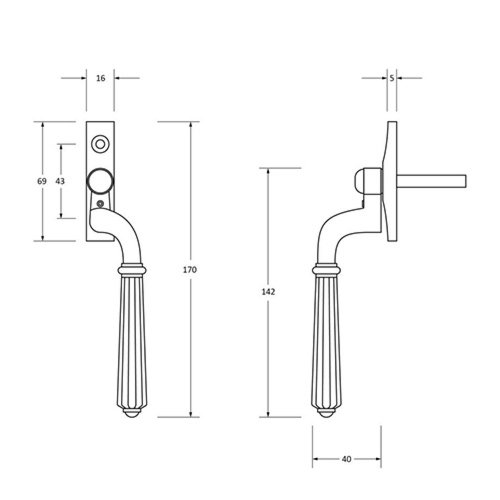 The product is handed and therefore care needs to be taken when choosing the correct hand. From the inside view, if your window is hinged on the left then a left-hand fastener is required. They have a 7mm x 40mm spindle and can be locked by way of a grub screw. Suitable for use with an espagnolette gearbox and window lock.