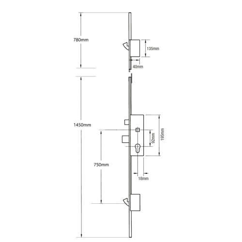 Fuhr 856 series multipoint door locks are most commonly fitted to UPVC doors but suit all door types. These UPVC door locks feature a solid spindle, lift lever (Fuhr call it lever operated) function, where the handle must be lifted to engage the locking points.