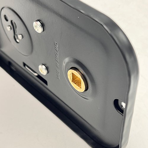 Available in black with electro brass features. supplied bagged with staple and 2 keys