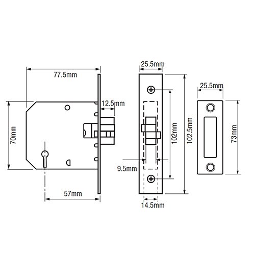 Union 2477 3 Lever Sliding Mortice Deadlock